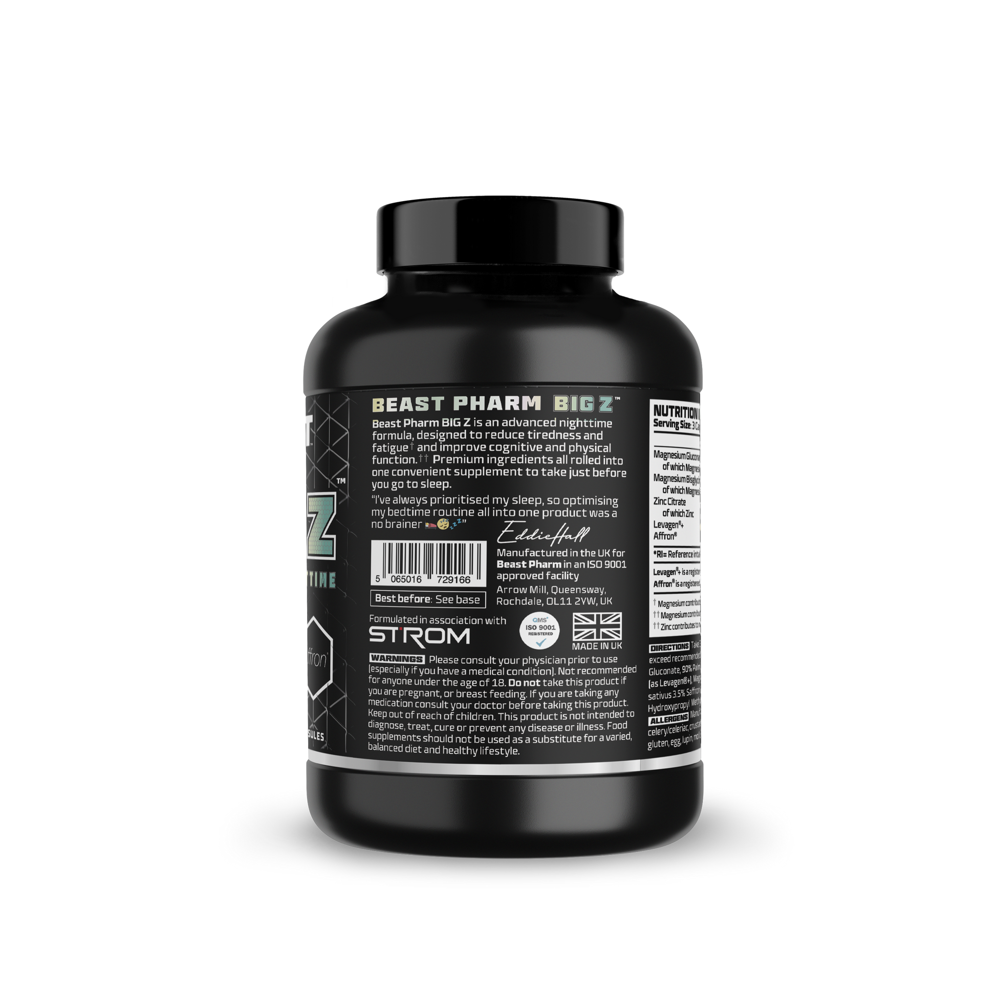 Beast Pharm BIG Z is an advanced nighttime formula, designed to reduce tiredness and fatigue† and improve cognitive and physical function.†† Premium ingredients all rolled into one convenient supplement to take just before you go to sleep.