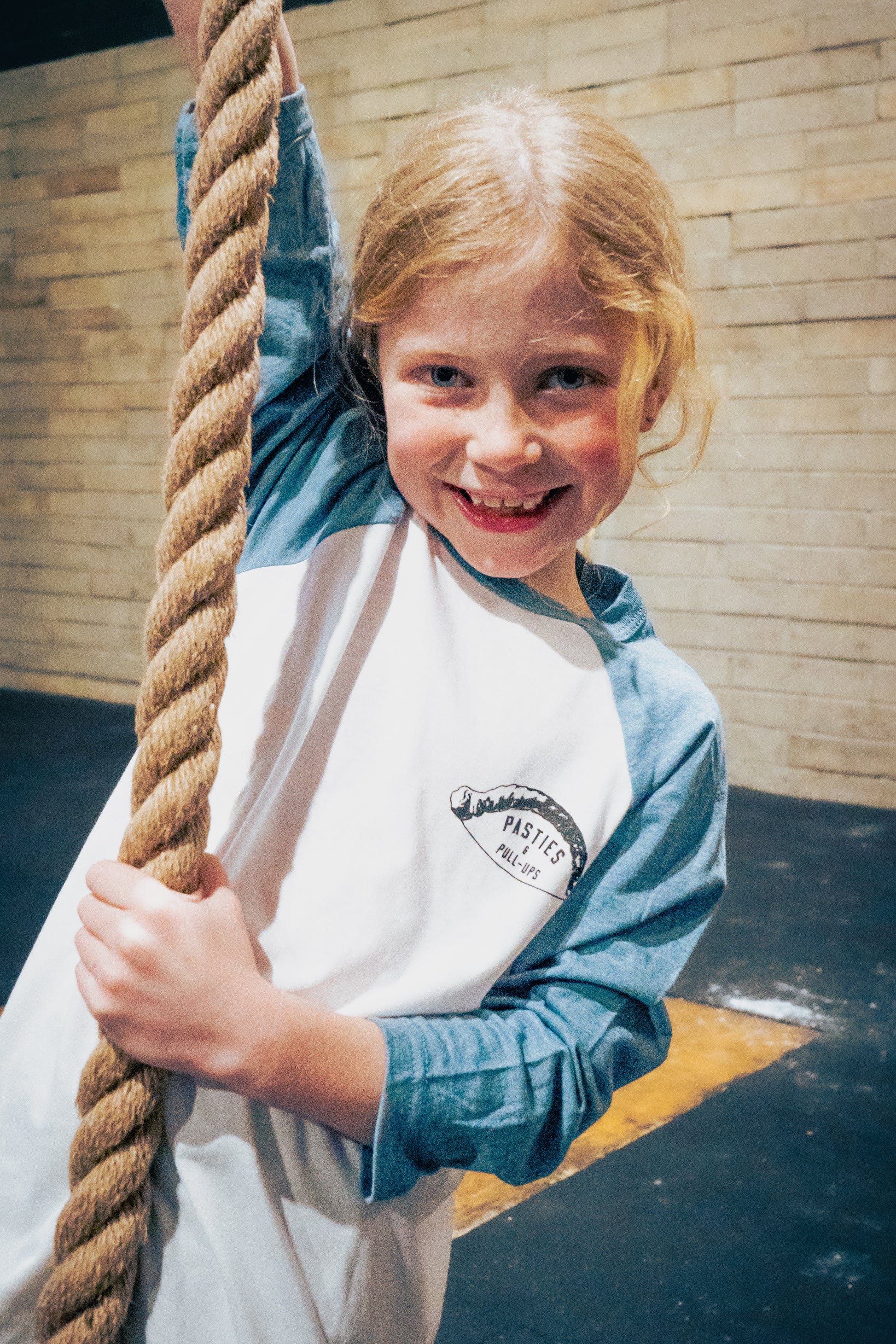 - Denim tri-blend baseball T, with our signature Pasty in black on the left chest
