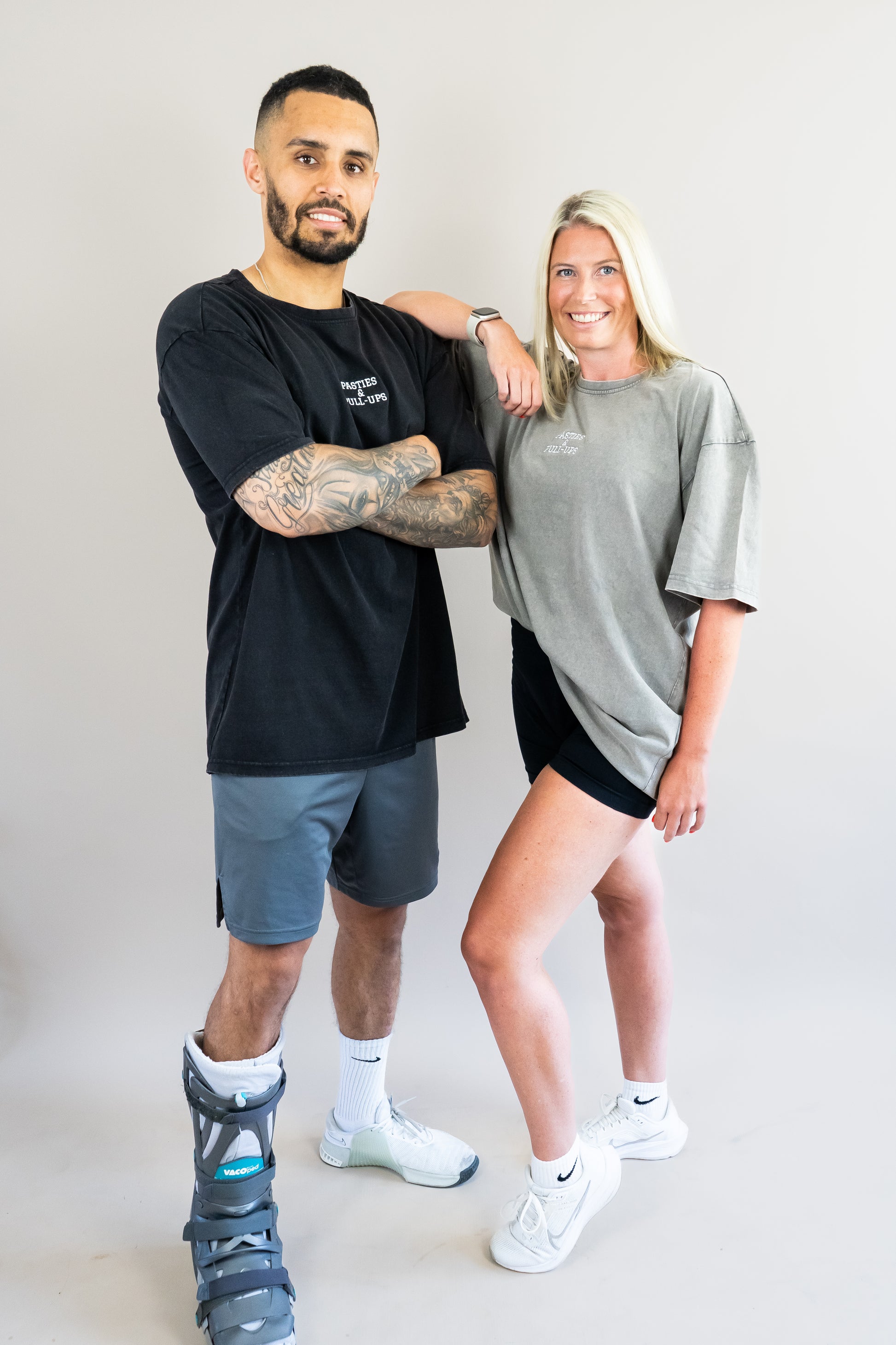 - Male model is 6" and wears a large. Female model is 5"6 and wears a medium.