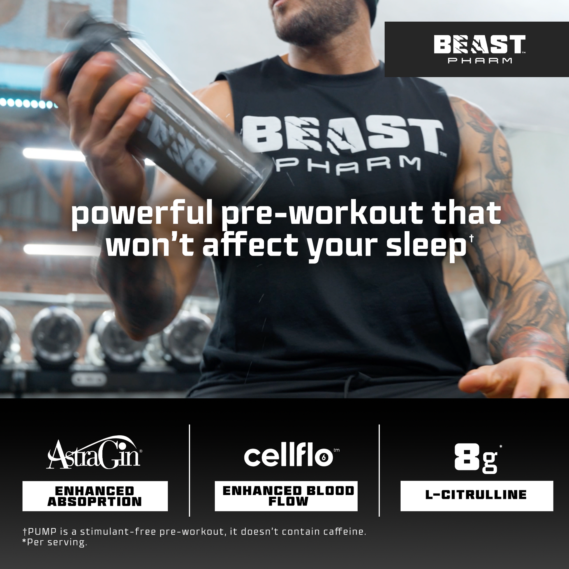Beast Pharm PUMP enables you to power through your most demanding workouts. Whether you're hitting the gym for strength, cardio or just to look phenomenal. It will help you RAMPAGE through your workouts and sleep like a baby afterwards.