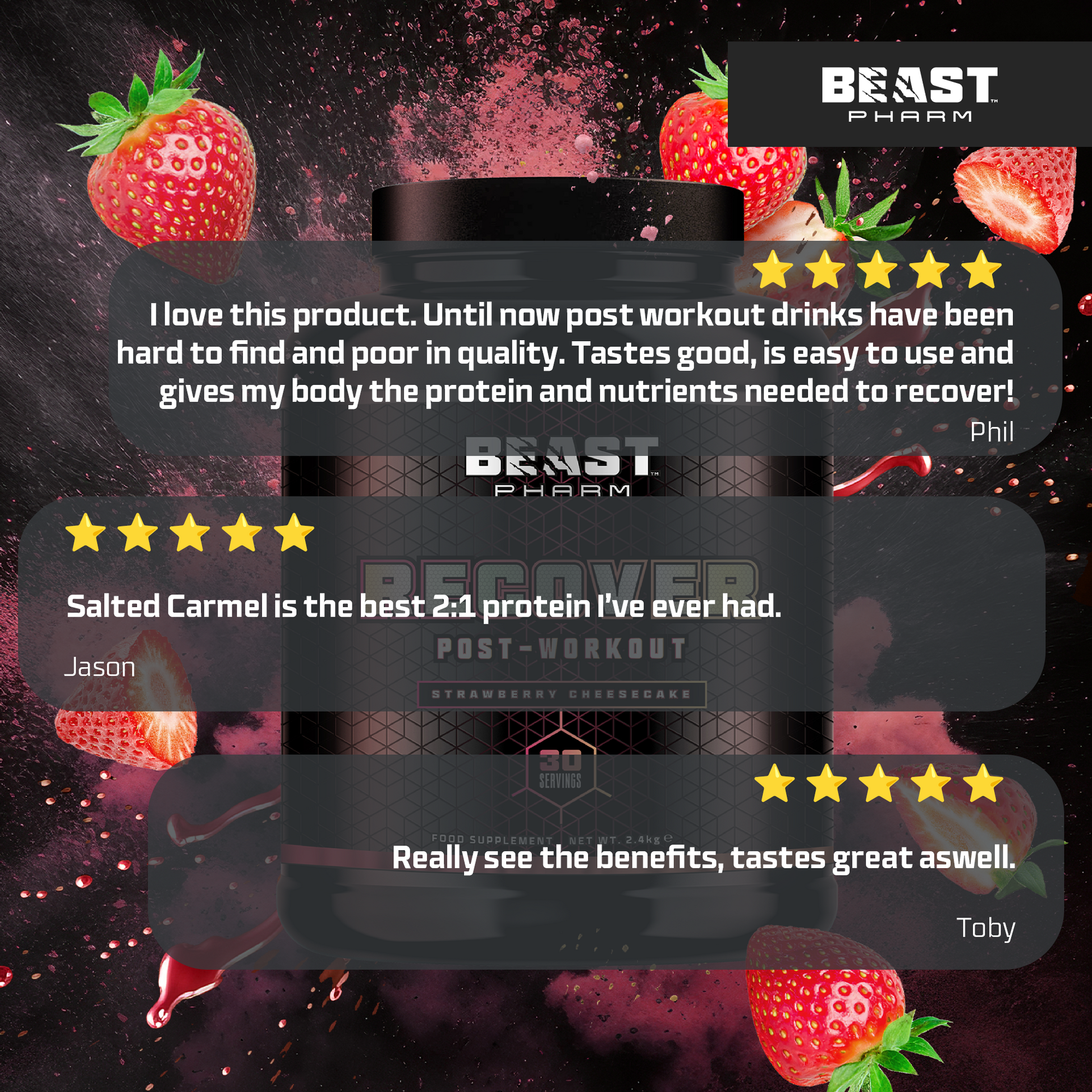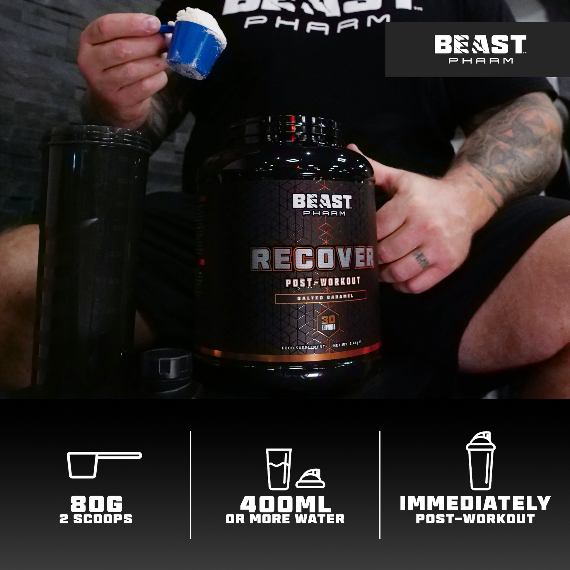 Beast Pharm RECOVER uses an optimal formulation of protein & carbohydrate excellence with delicious flavours, delivering a FEAST of nutrition to your body every single time. Recover like a pro and show the rest of the world why you’re a BEAST!