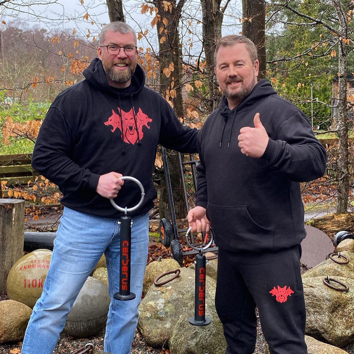 CERBERUS Nicol Walking Stone Handles are the official replicas of the ring handles and pick-up heights of the real Nicol Walking Stones. They are not just standard circular shapes they have been made as close as possible to the two different handle shapes on the real stones. They will allow you to build up both your strength and pain tolerance. You will also be able to practice and improve your finger and hand placement as well as grip technique. Because these come with specifically designed loading pins you also get the correct pick up. You can improve your lift and perfect your technique! Our handles will get you ready for this epic challenge and let you train like the pros!