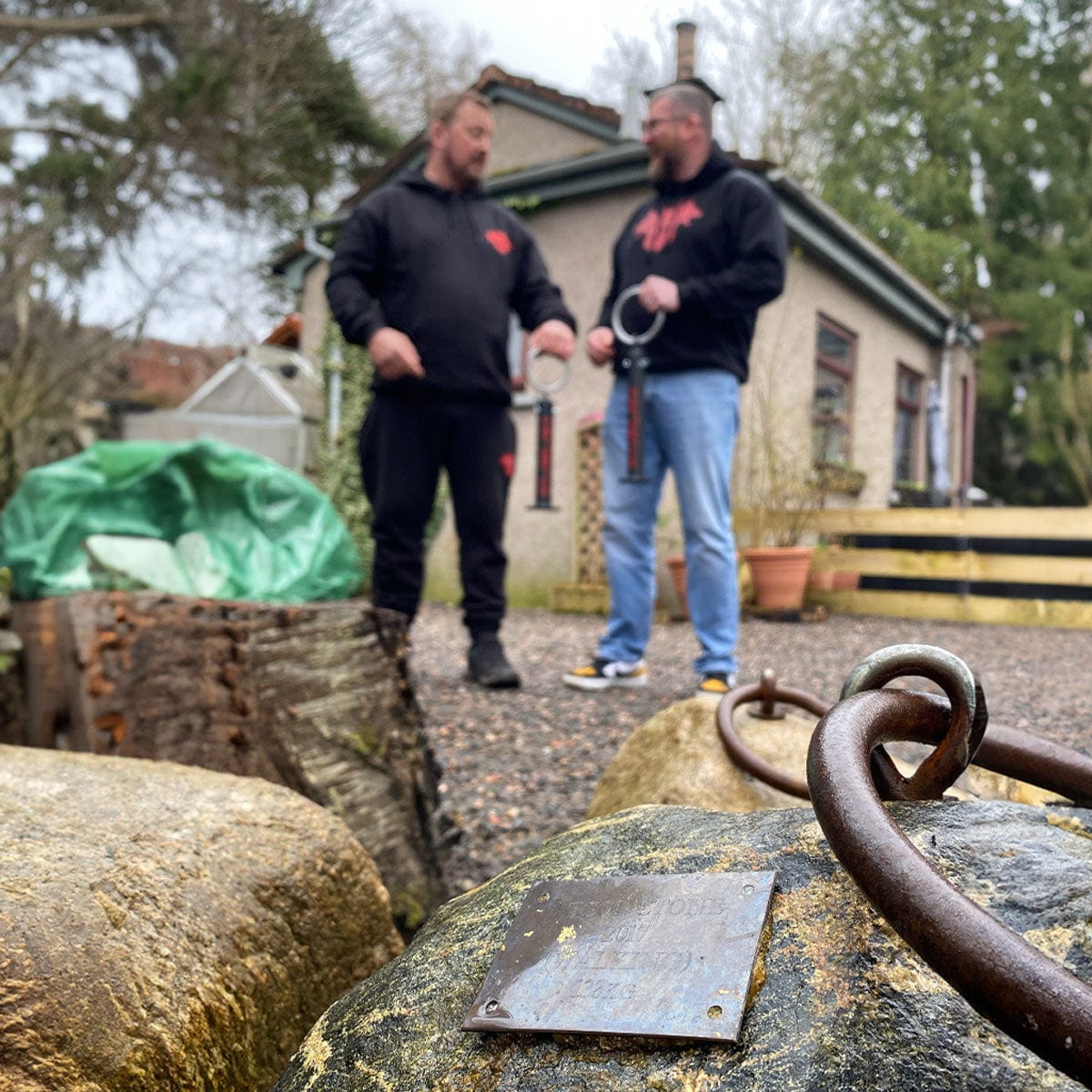 The test of strength with these stones is not just to pick them up which is a feat of strength in itself, but to walk with them for distance. The heavier stone weighs 138kg (304lbs), and the lighter stone weighs 114kg (251lbs) for a total of 252kg (555.5lbs). They are very humbling to try and even the strongest men and women in the world find them a challenge. This is due in part because of the thin steel handles that feel VERY different from the bar and will cause a lot of pain. Also the stones are not perfectly balanced like farmers walk or a frame carry and also bash and bang your legs causing them to swing about every step.
