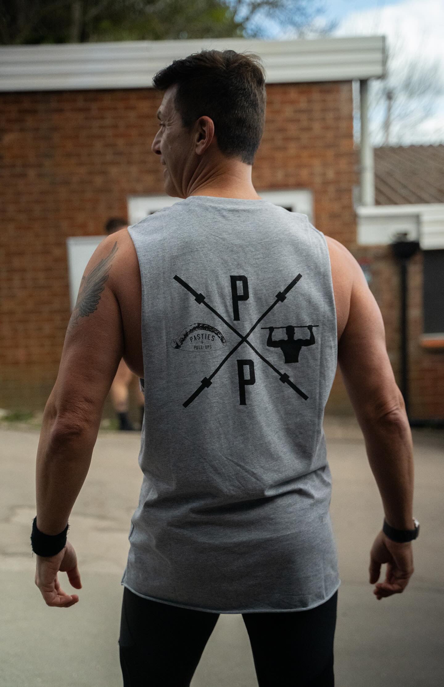 - Pasty on the front and Pasties & Ups barbell on the back, with added Kernow flag