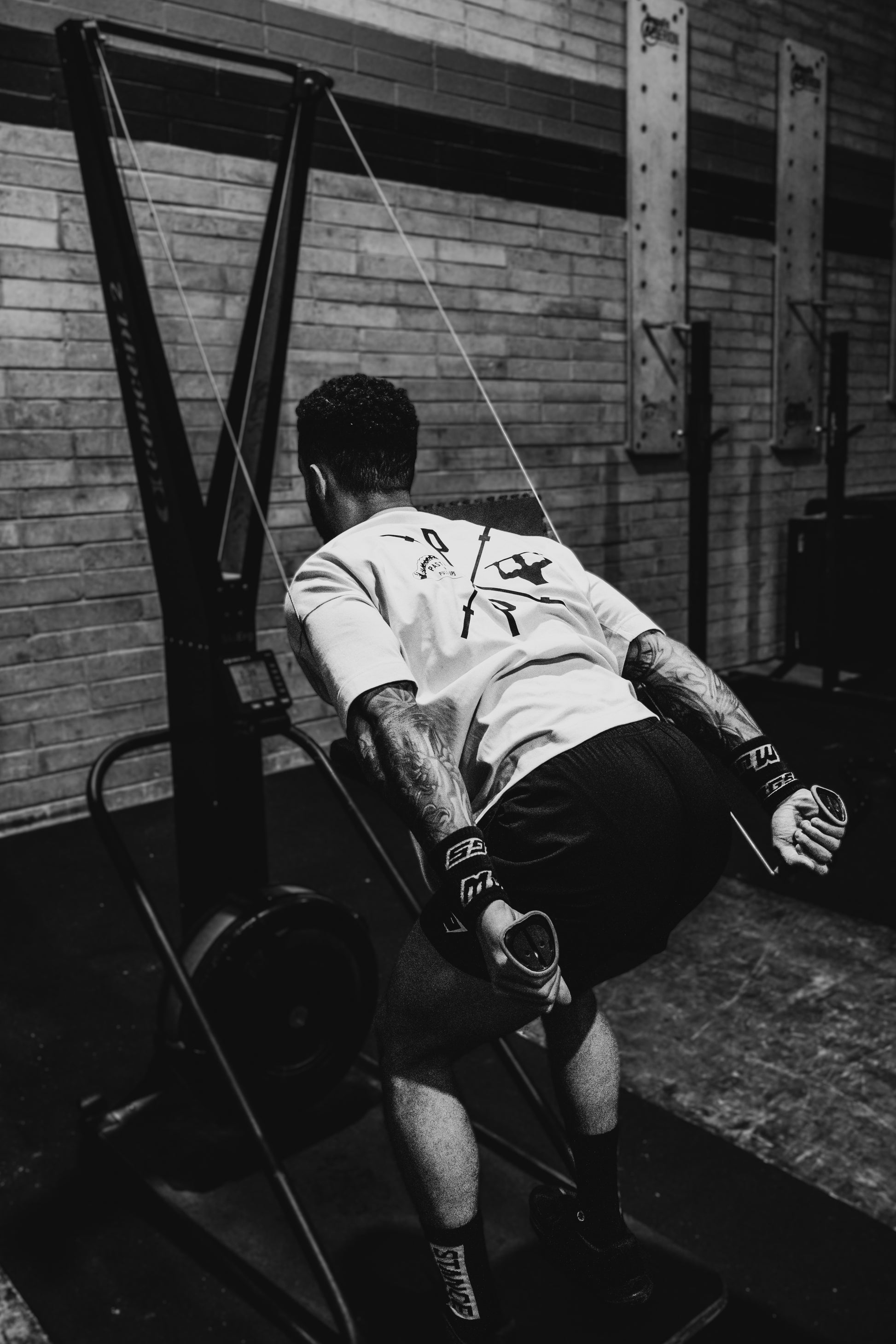 - Pasty print front breast & barbell logo on the back.